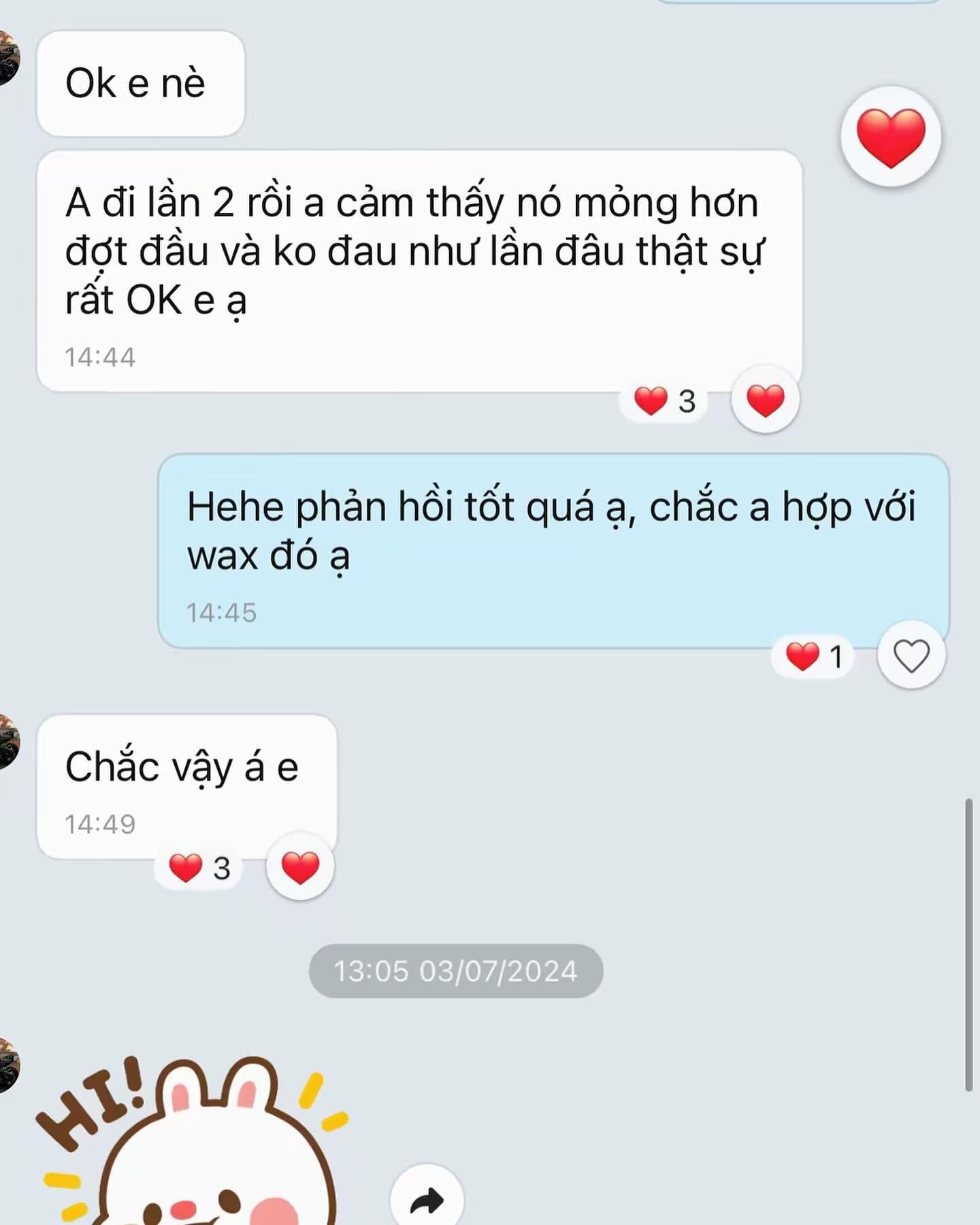 Chời ơiiii cứ z hoài chớt em luôn, bên e wax thì wax miếng nhỏ xíu hơn con kiến nữa, nên đau cũm như kiến cắn thoaiii. Tin em!!!! 🤣😏