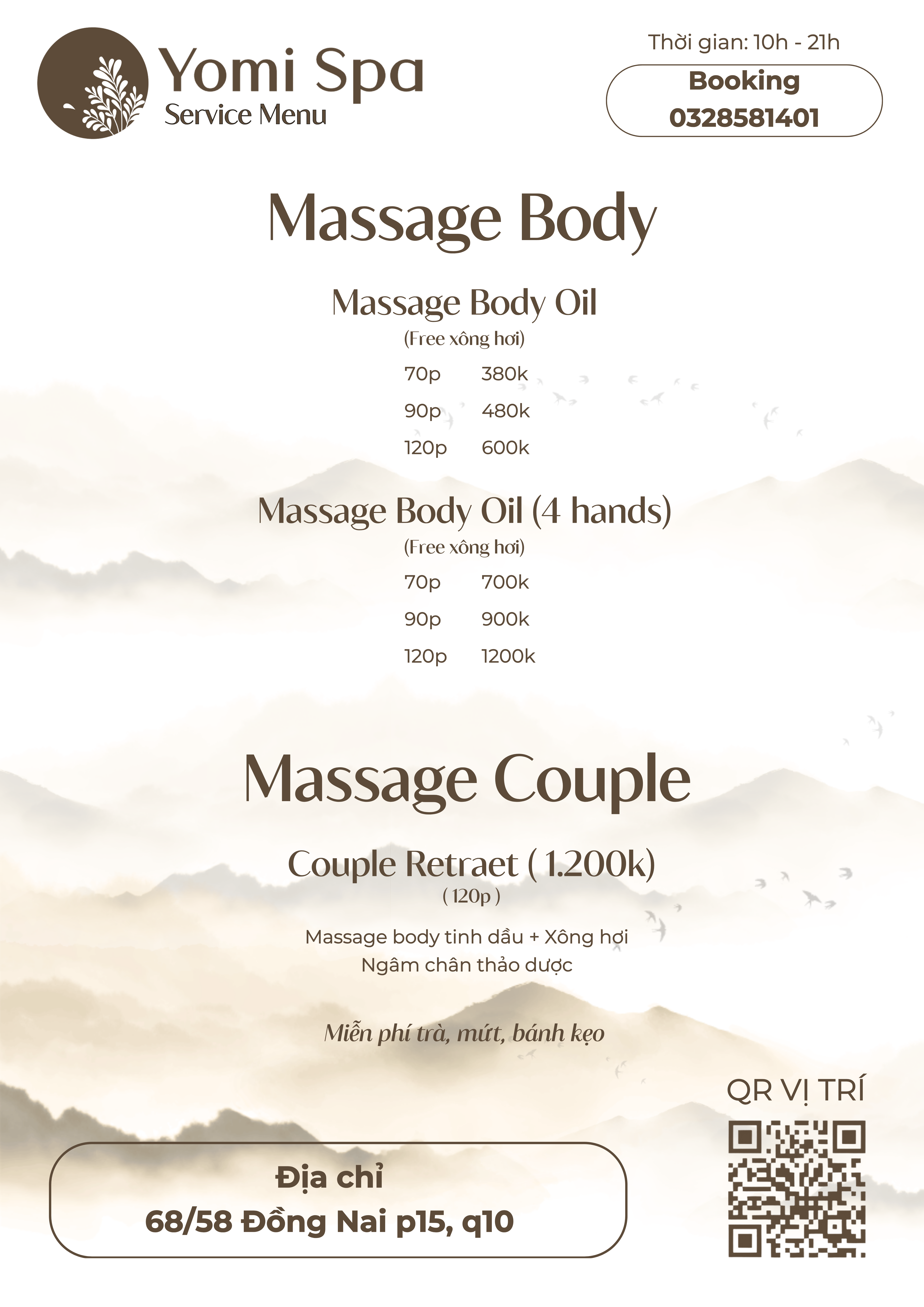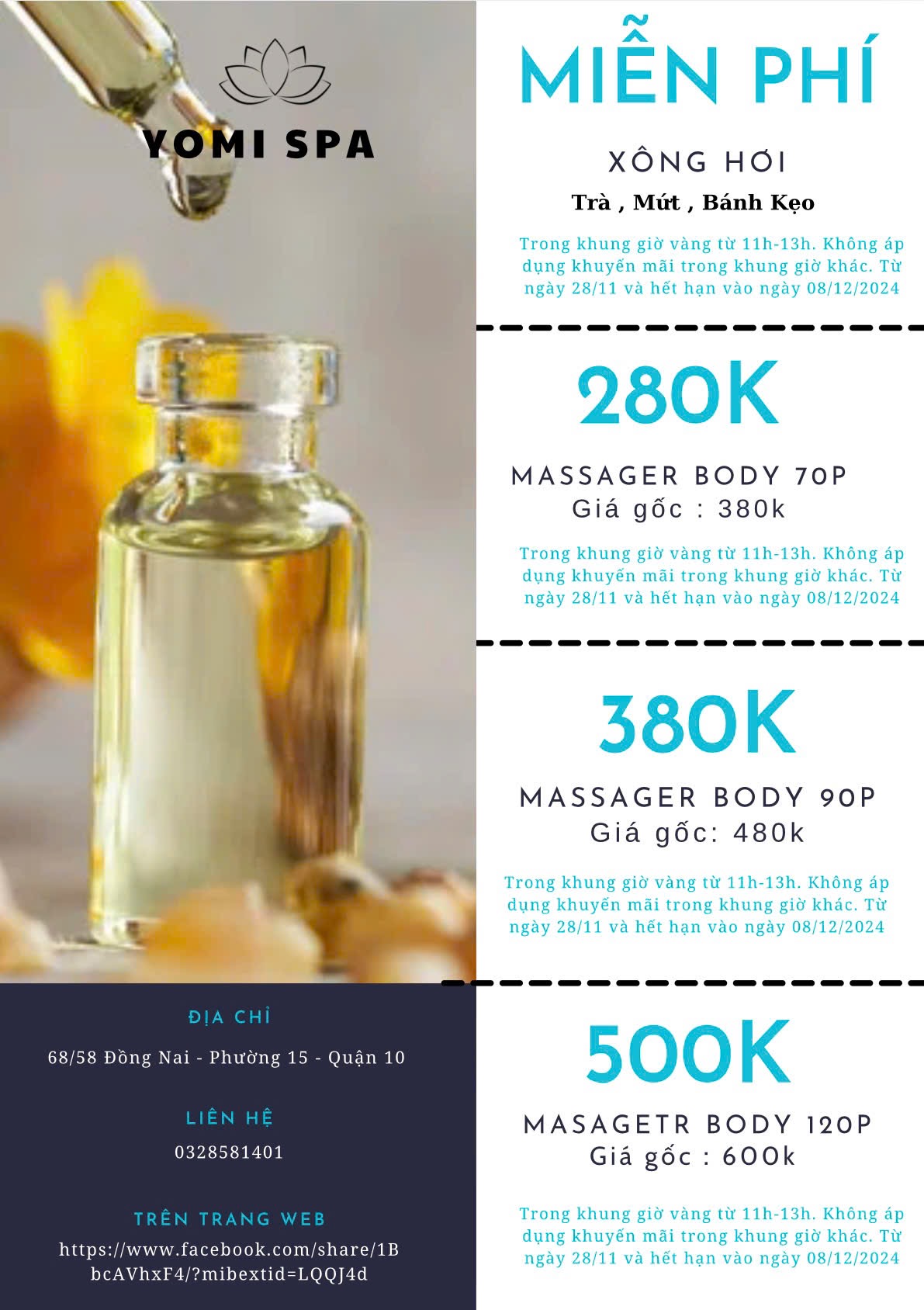 Vuốt lướt Cơ Sở Ưu đãi Yomi Spa Khuyến mãi giờ vàng